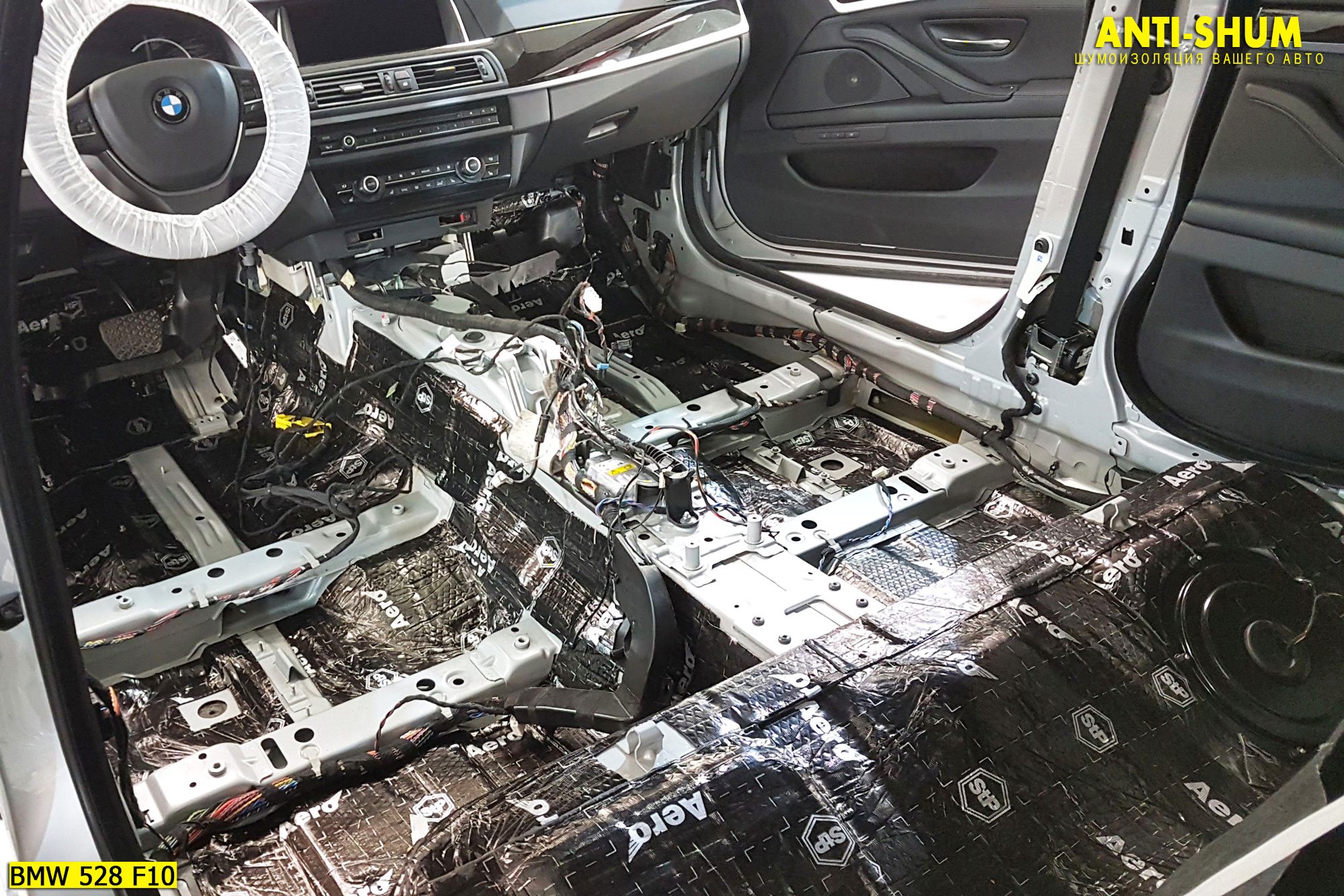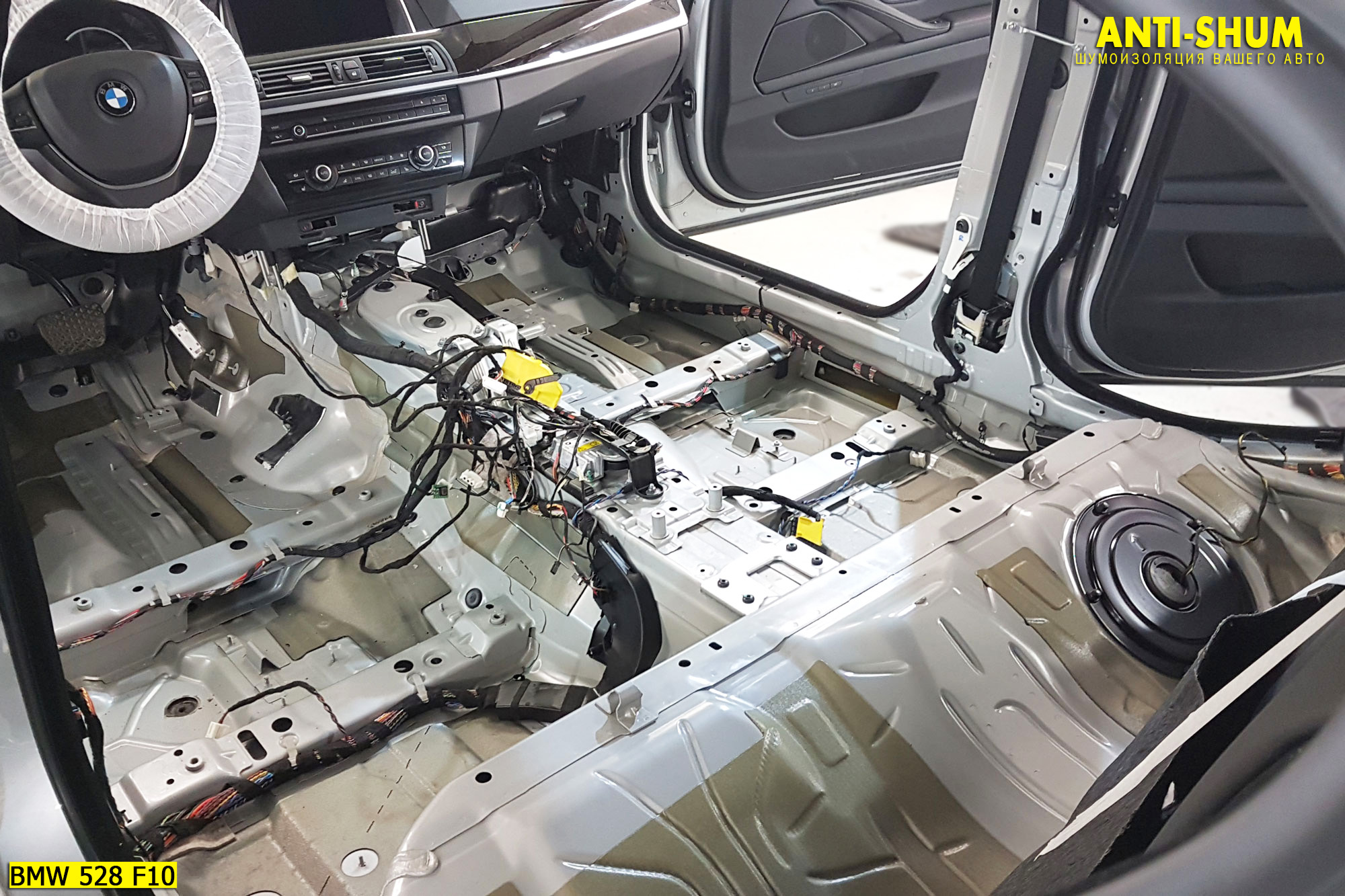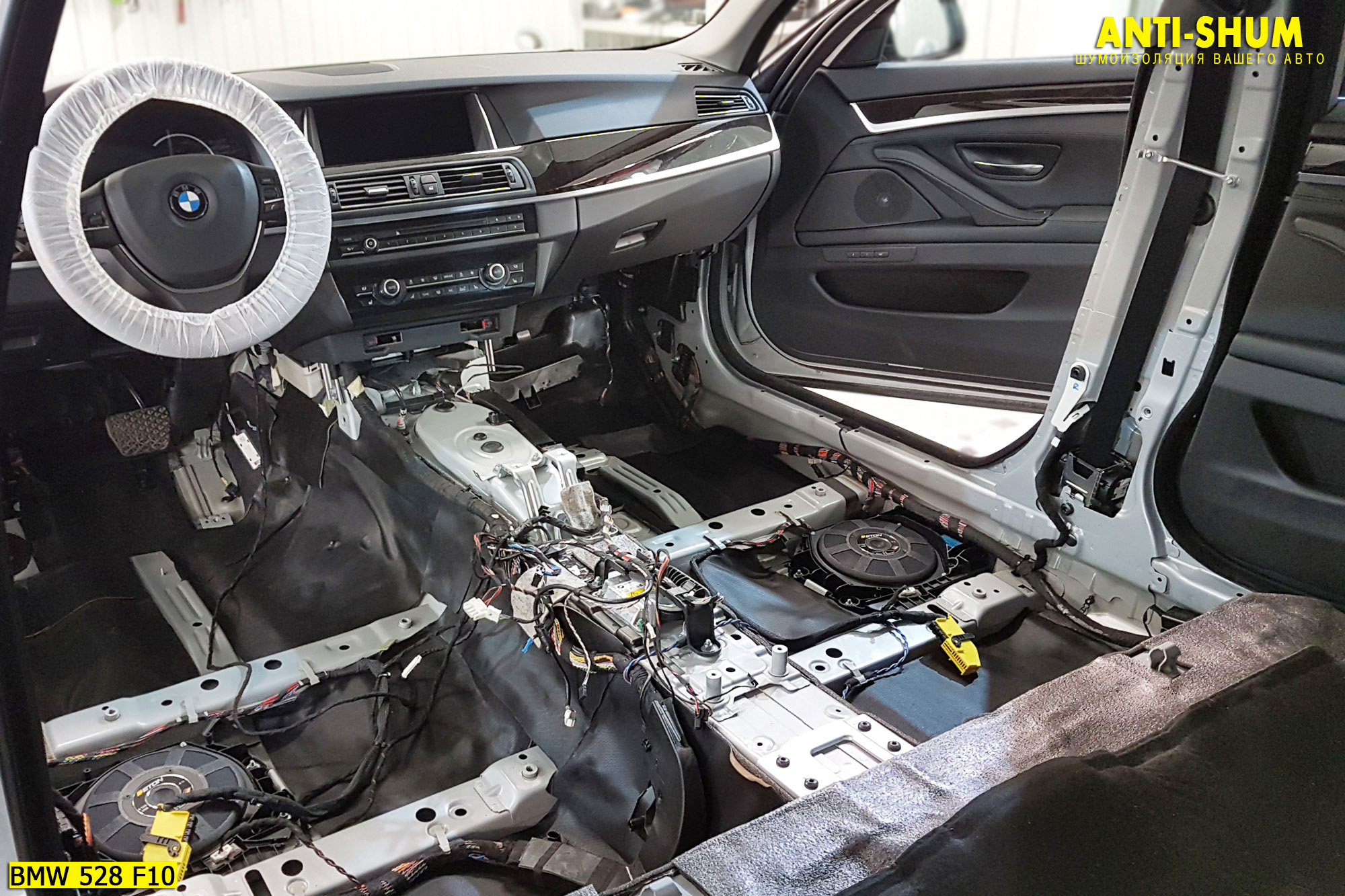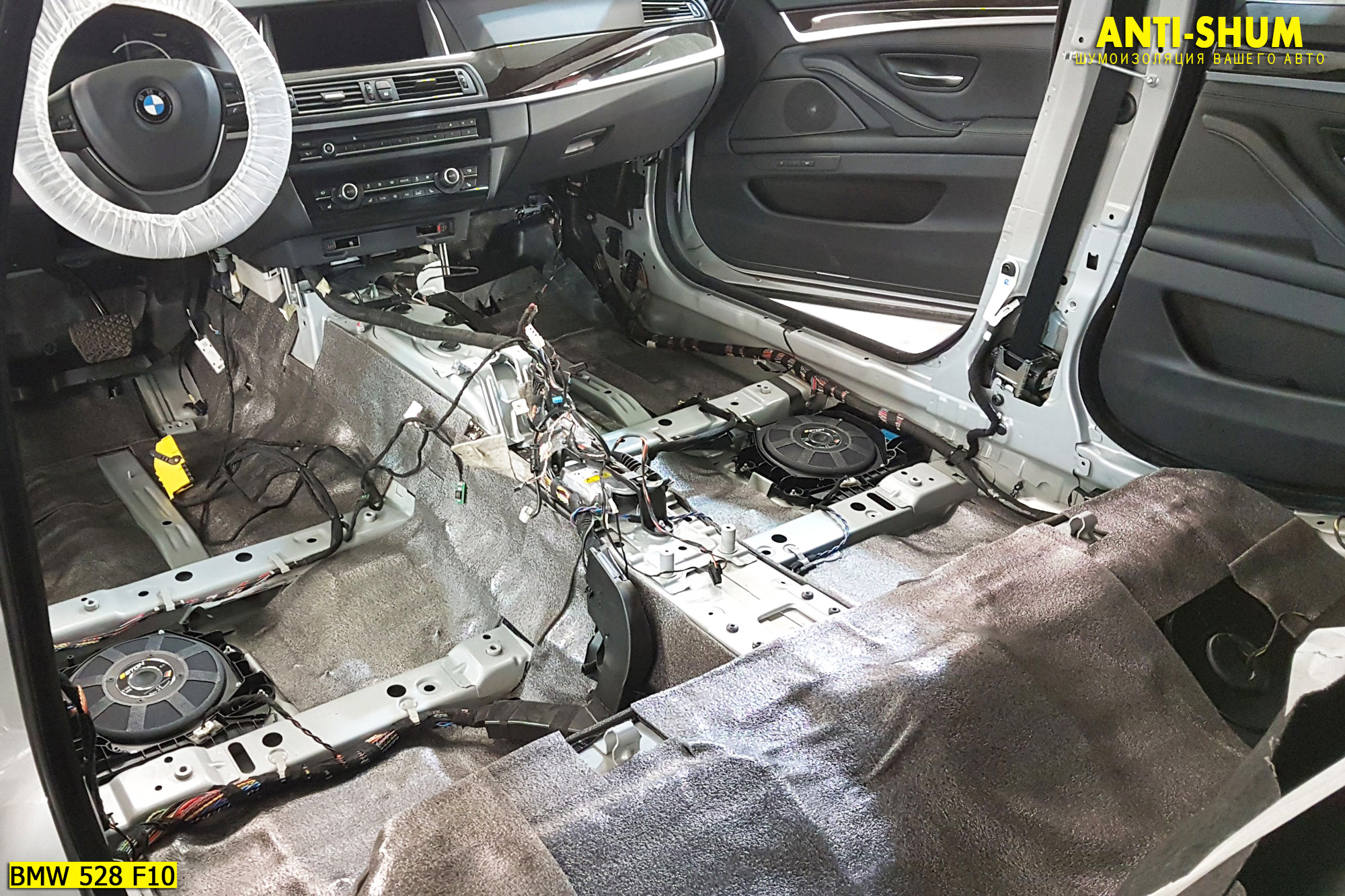 Сеть студий АНТИ-ШУМ представляет Вашему вниманию фотоотчет о шумоизоляции BMW 5 серии за один рабочий день в Вашем присутствии!