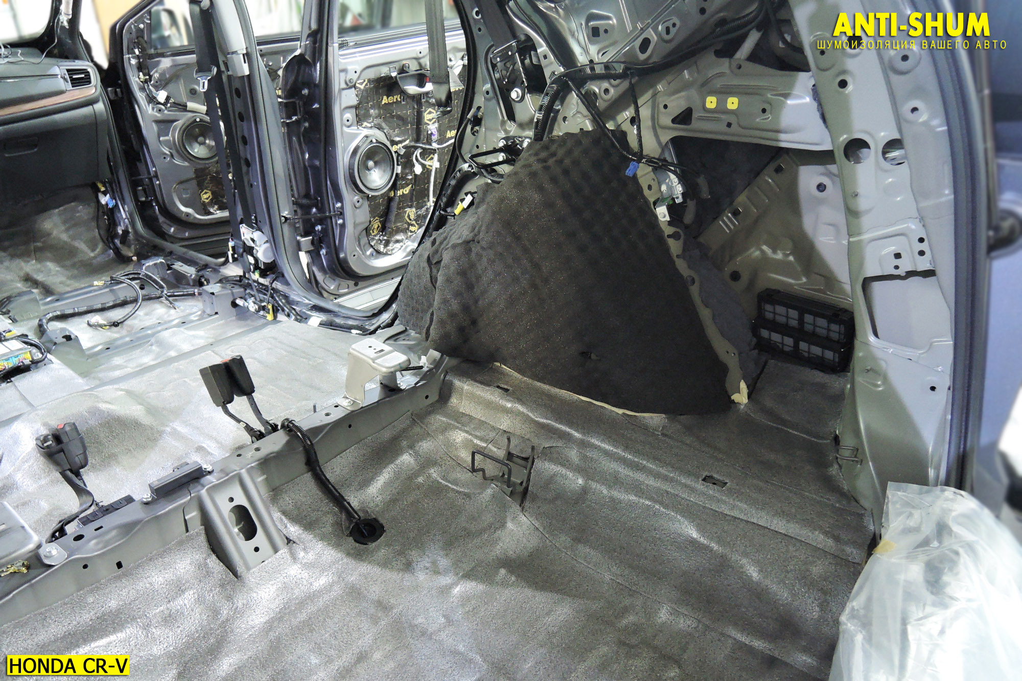 ШУМОИЗОЛЯЦИЯ HONDA CR-V ПО ВАРИАНТУ «ПРЕМИУМ» ЗА ОДИН РАБОЧИЙ ДЕНЬ В ВАШЕМ ПРИСУТСТВИИ