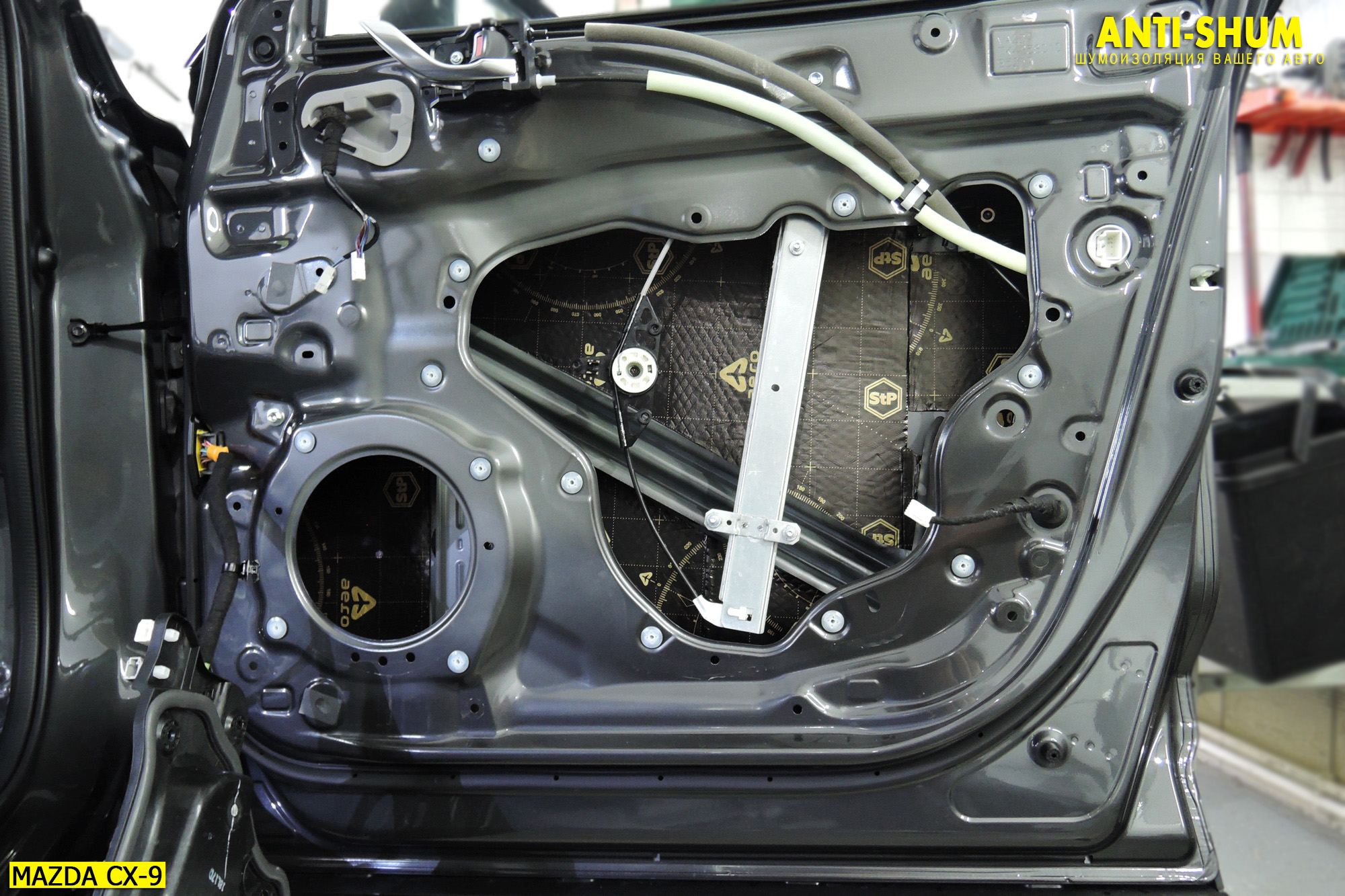 ШУМОИЗОЛЯЦИЯ ДВЕРЕЙ АВТОМОБИЛЯ MAZDA CX9 ПО ВАРИАНТУ «ПРЕМИУМ»