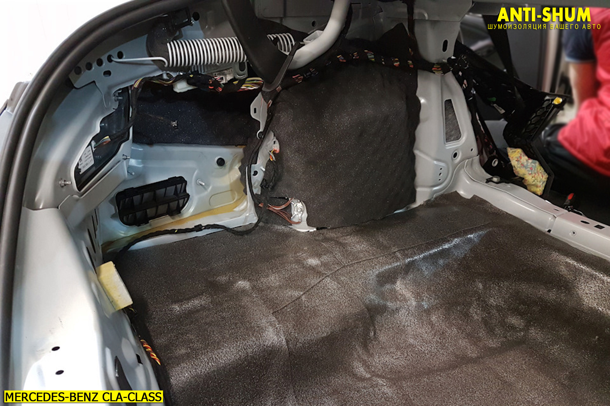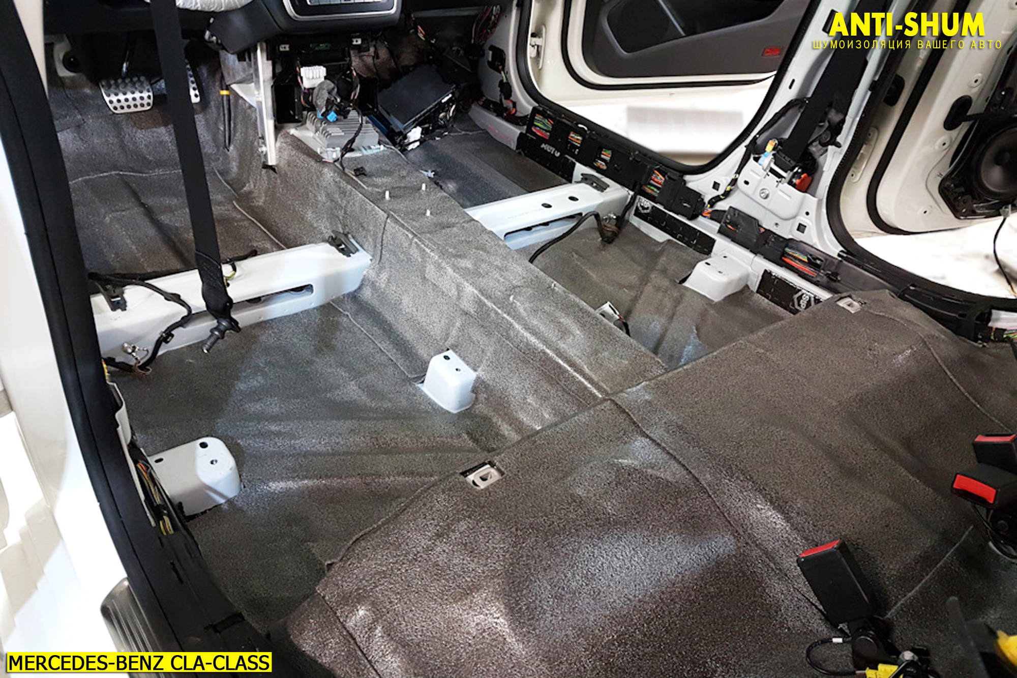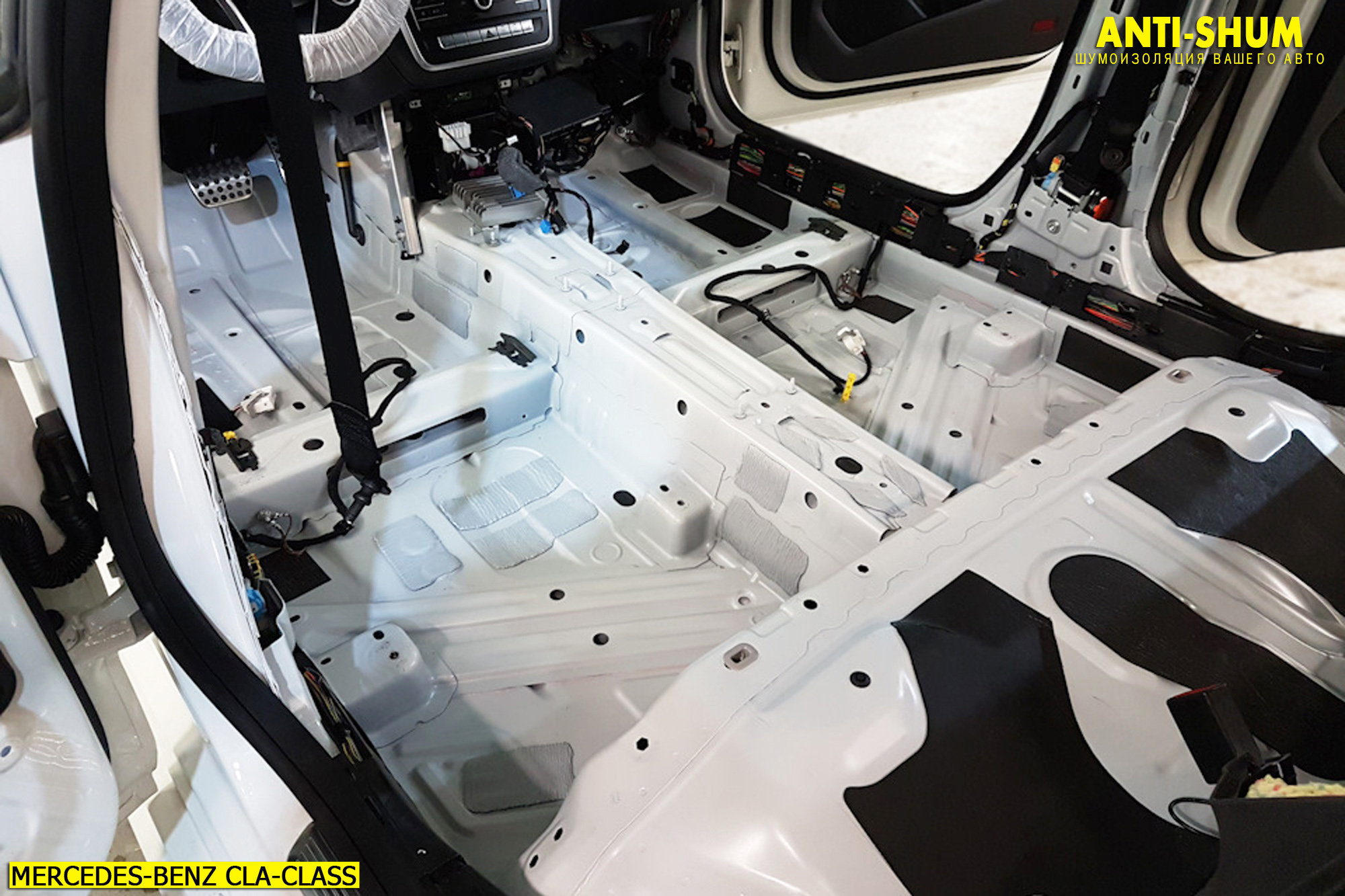 Шумоизоляция автомобиля Mercedes-Benz CLA-class в Москве, Санкт-Петербурге, Новосибирске, Екатеринбурге, Казани, Нижнем Новгороде, Челябинске, Краснодаре, Ростове-на-Дону, Тюмени и Сочи