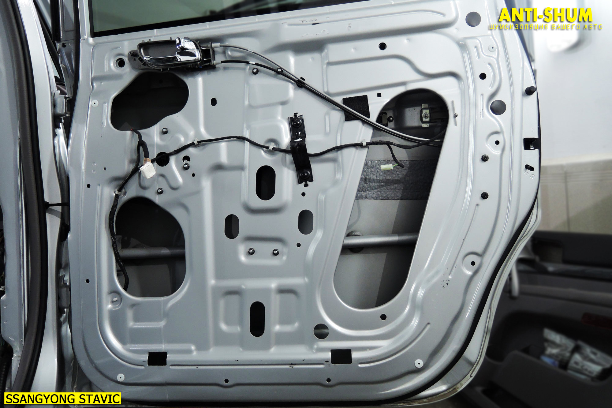 Достаточно редкий для наших дорог корейский минивен SsangYong Stavic прибыл к нам на шумоизоляцию с жалобами на «пустые» и звонкие двери, невнятное звучание штатной акустики, обилие скрипов и «сверчков» в салоне, а также высокий общий уровень шума при движении на скоростях свыше 100 км/ч. Так как автомобиль будет использоваться для частых дальних поездок, владелец машины выбрал максимальный вариант шумоизоляции «Премиум».