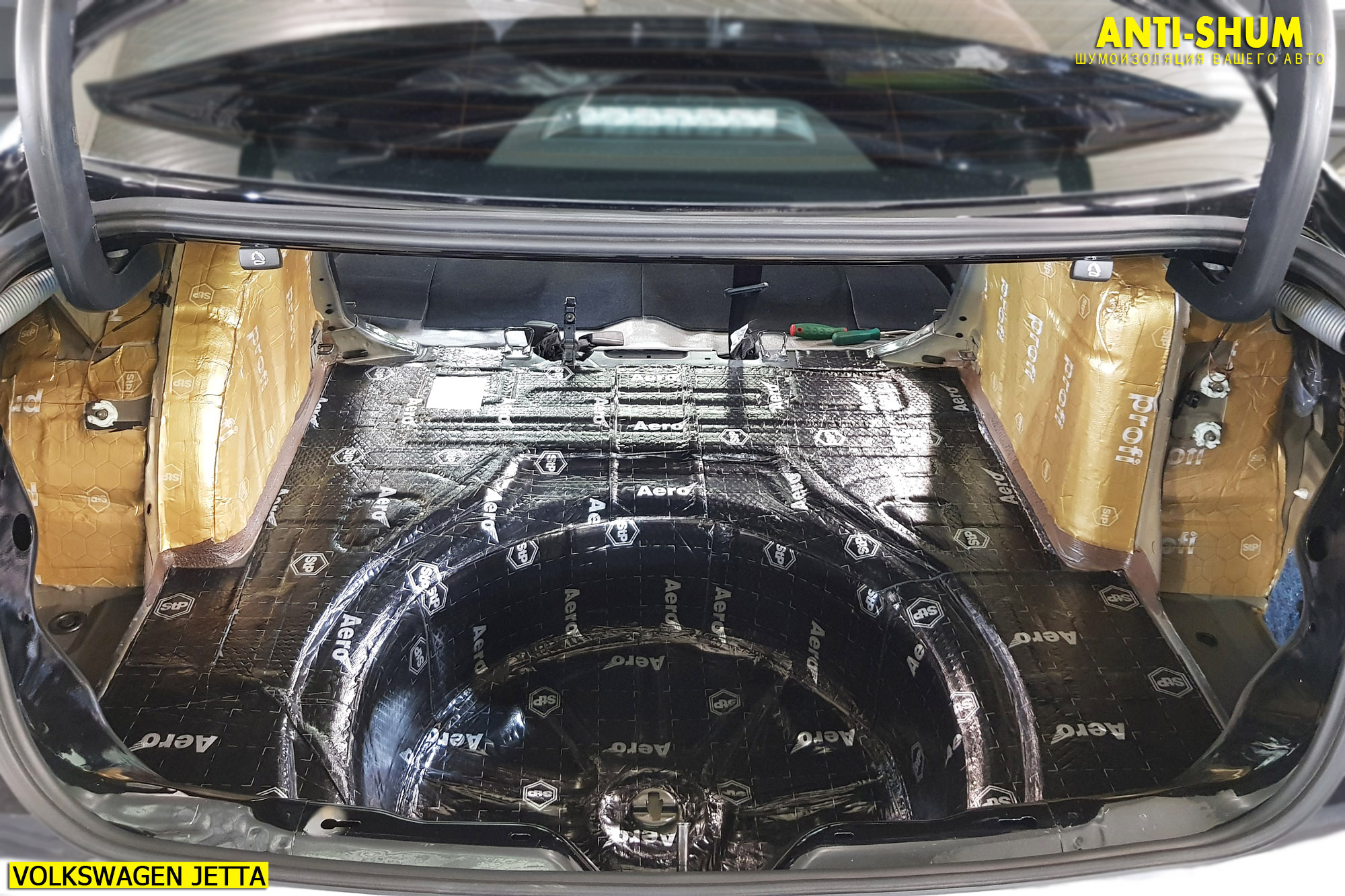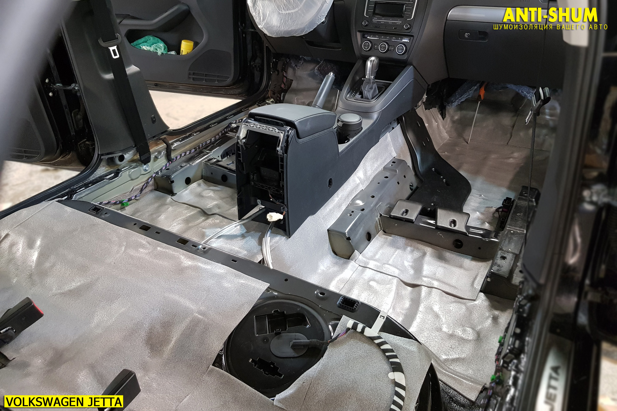 Сеть студий АНТИ-ШУМ предлагает Вашему вниманию фотоотчет о шумоизоляции автомобиля Volkswagen Jetta за один рабочий день в присутствии клиента!